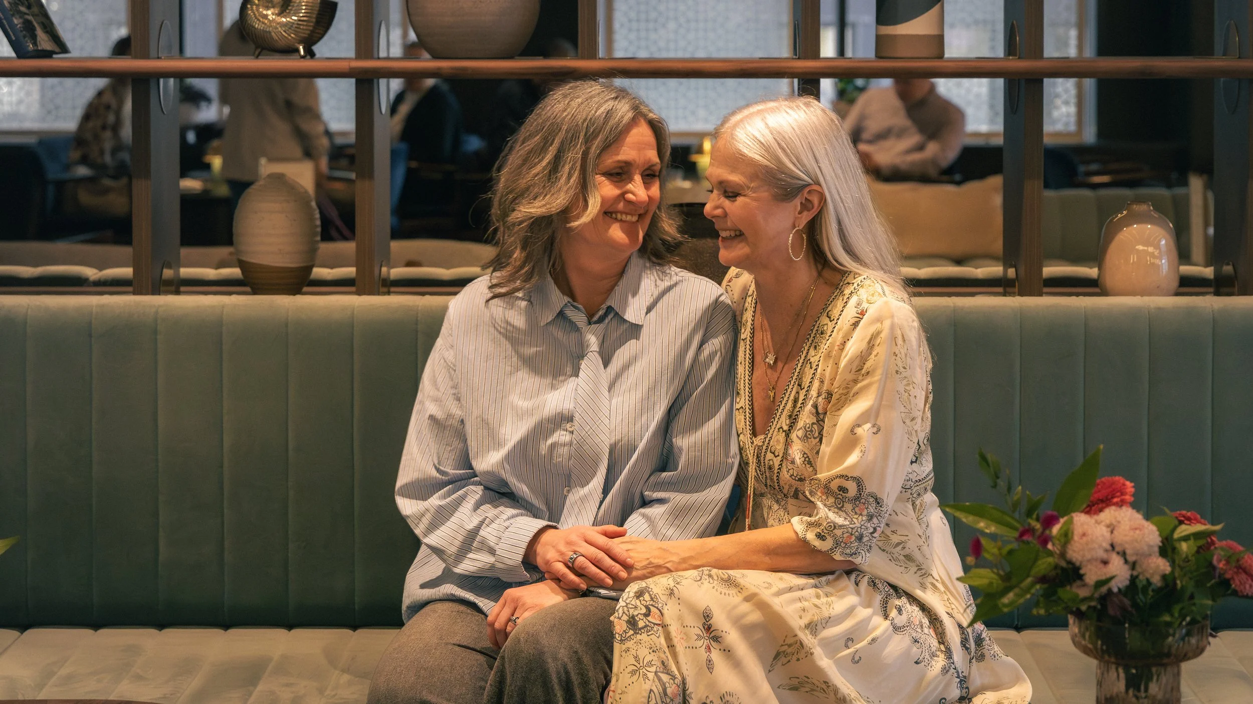 De anländer till hotellets lobby nära T-centralen med den sortens säkerhet som inte kräver någon publik. Inte påträngande, inte utmanande — bara närvaro. De går som människor som bestämt sig för att vara exakt där de är. Jag frågar om de är nervösa inför intervjun. De svarar nästan simultant: Nej, varför skulle vi vara det? Och skrattar sedan åt sig själva, åt det faktum att de tänkte likadant igen. Det händer hela tiden, förklarar de. Efter flera år av dagliga samtal, delade beslut och ömsesidigt beroende har de börjat glida in i varandras meningar.