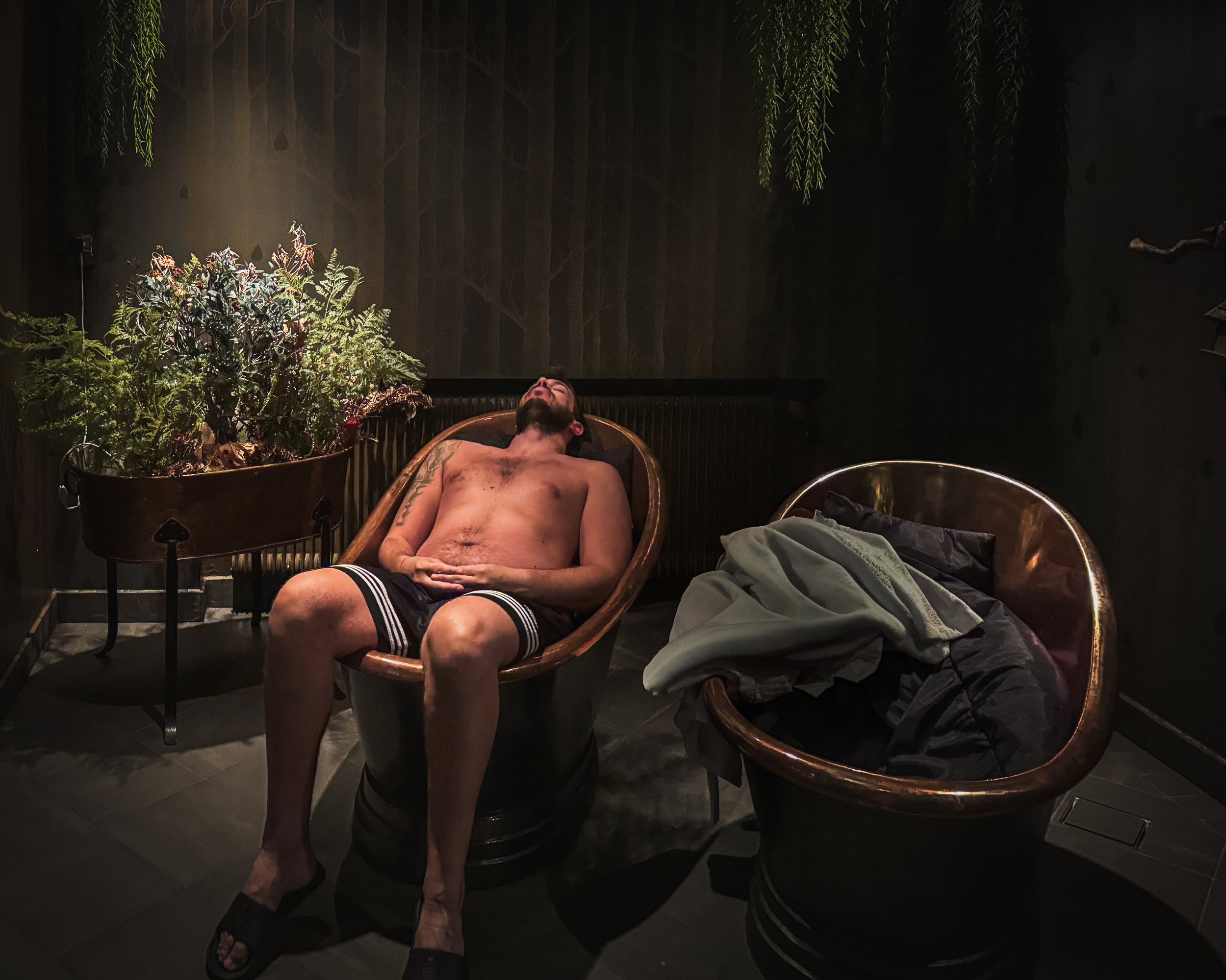 Här rör man sig långsamt, nästan intuitivt, mellan värme, vatten och vila. Ingen stress, inga höga röster, inget som stör. Bara en mjuk övergång från ett rum till nästa — och en kropp som sakta släpper taget.